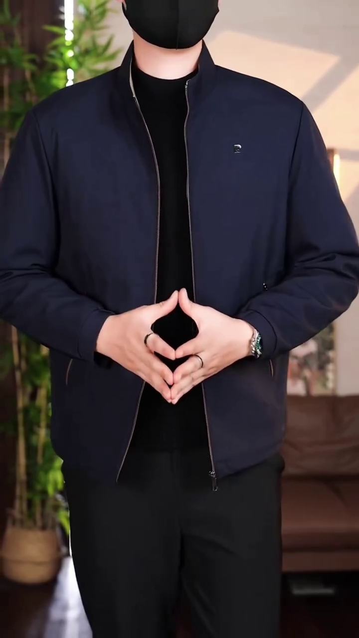 Men’s Classic Navy Blue Band Collar Zip Jacket