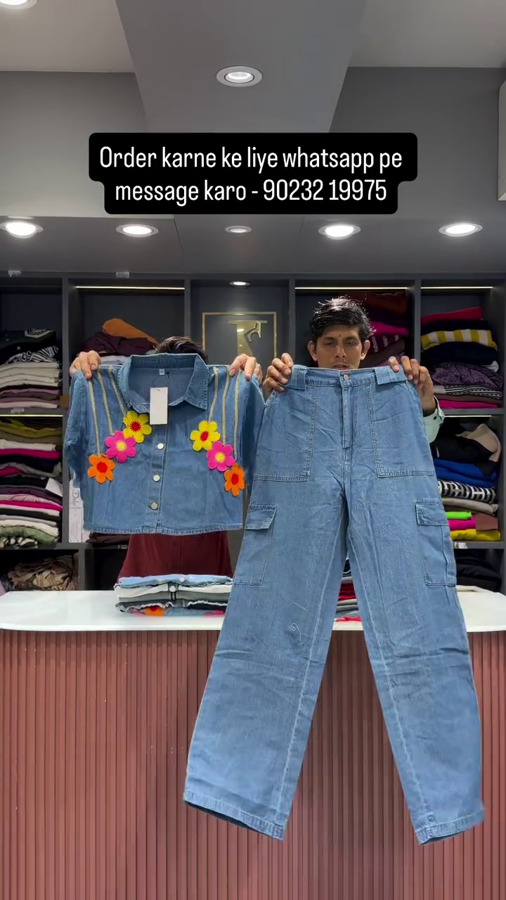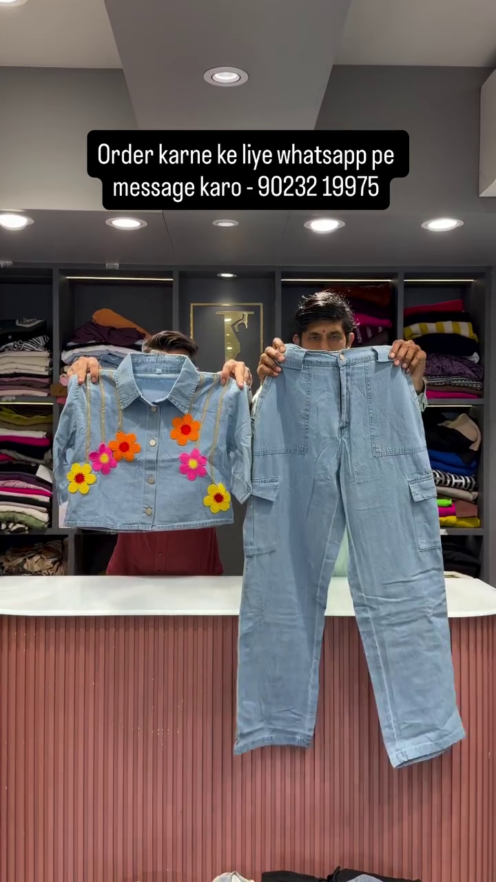 Paired with fashionable jeans, this outfit creates a balanced combination of style and practicality. The jeans are designed to offer a flattering fit while providing durability and comfort for long hours of wear. Together, the top and jeans create a versatile look that can easily transition from day to evening.